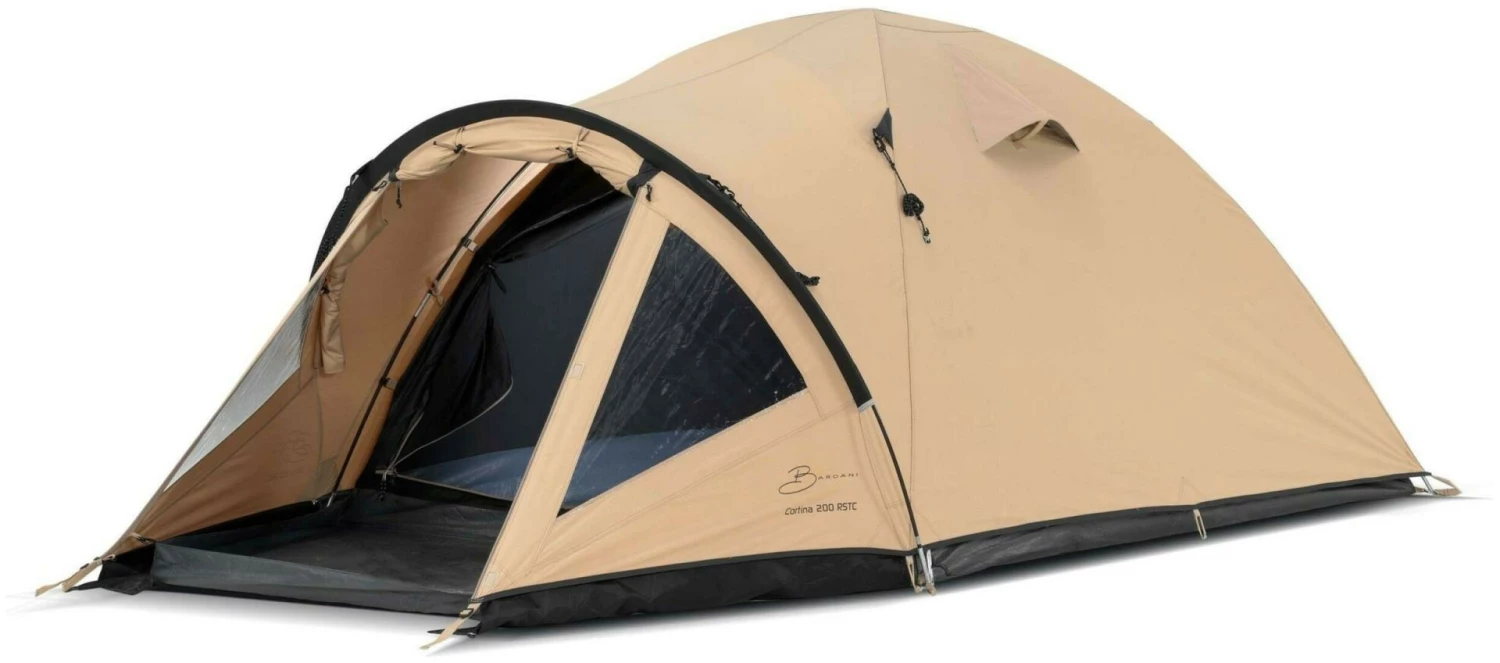 De Bardani Cortina 200 RSTC is een stevige 2-3 persoons bijzettent met leefruimte. De buitentent is gemaakt van ademend technisch ripstop katoen (210 gr/m2). De binnentent is van ademend technisch katoen, met een PE kuipgrondzeil. De slaapcabine is verduisterd, en extra lang (230 cm). De ramen in de buitentent zijn afsluitbaar met gordijnen. De deur naar de slaapcabine is voorzien van volledig horrengaas, voor extra ventilatie.