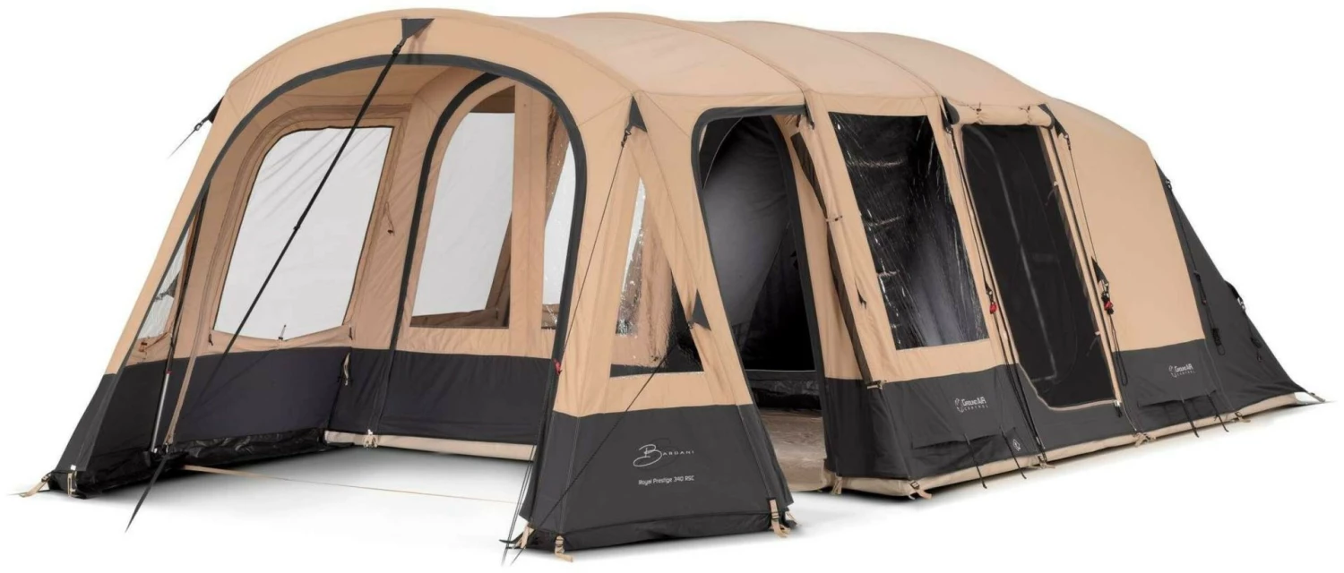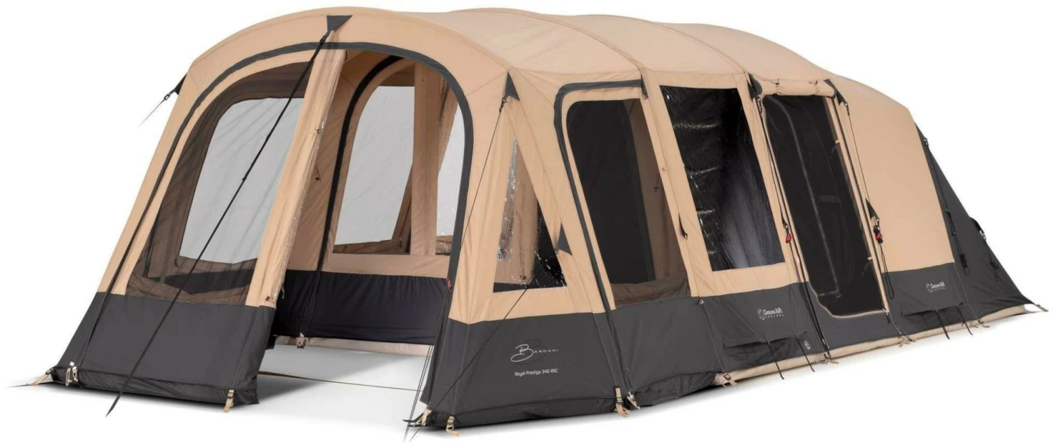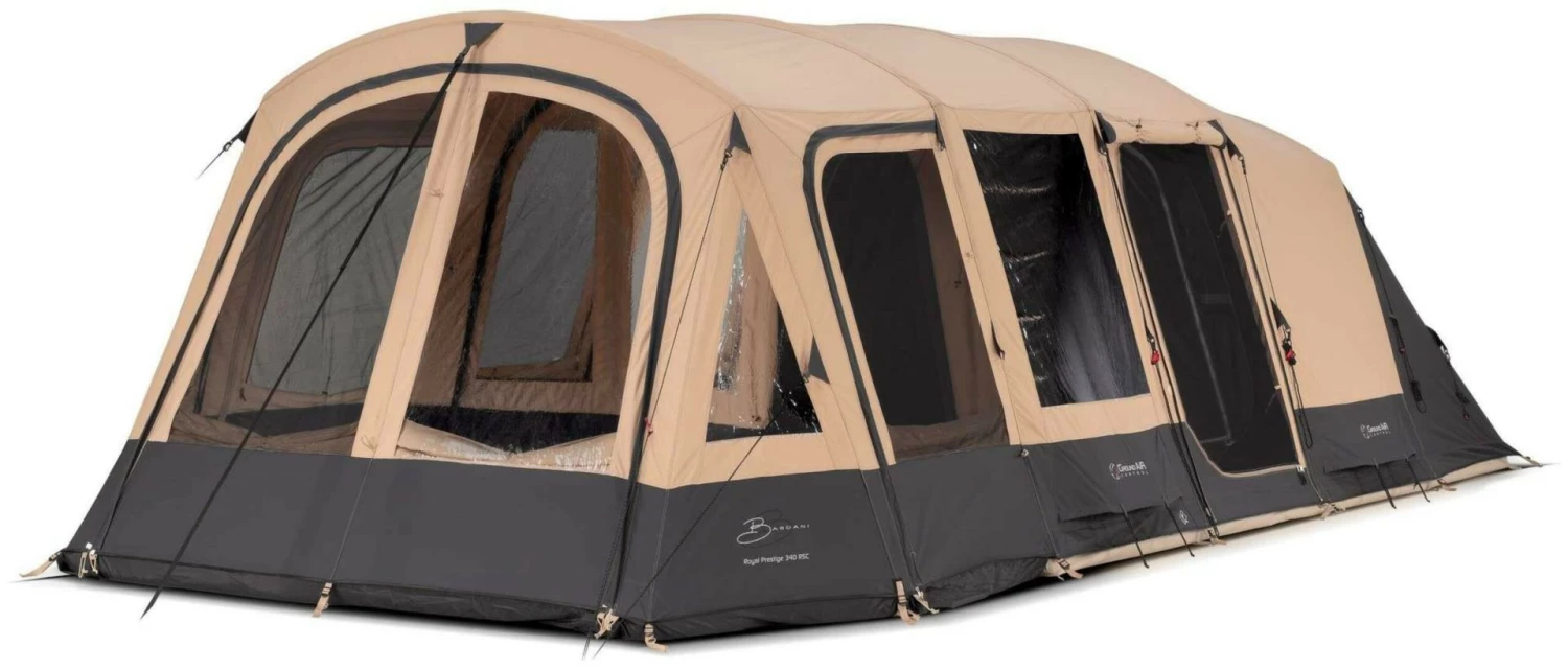 De Bardani Royal Prestige 340 RSC is een zeer luxe, rechtwandige katoenen tunneltent met extra diepe afsluitbare luifel en een afritsbaar bisonyl kuipgrondzeil. De buitentent is van 100 % ripstop katoen.(220 gr/m2). De binnentent is van ademend technisch katoen, en extra lang (230 cm). De binnentent is 320 cm breed, en te verdelen in twee gedeelten, eentje van 180 cm breed, en een van 140 cm breed).
