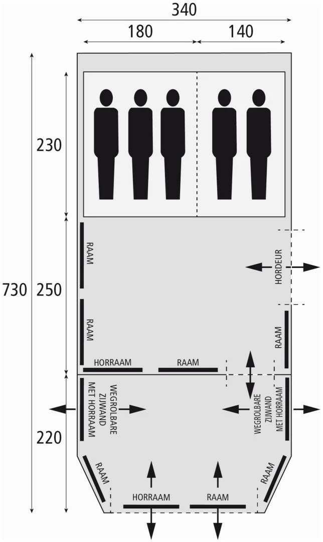 Das Bardani Royal Prestige 340 RSC ist ein sehr luxuriöses, geradwandiges Baumwolltunnelzelt mit extra tiefer abschließbarer Markise und einer abnehmbaren Bisonyleimer-Grundplatte. Das Außenzelt besteht aus 100 % Ripstop-Baumwolle (220 gr/m2). Das Innenzelt besteht aus atmungsaktiver technischer Baumwolle und ist extra lang (230 cm). Das Innenzelt ist 320 cm breit und kann in zwei Teile unterteilt werden, einen von 180 cm Breite und einen von 140 cm Breite).