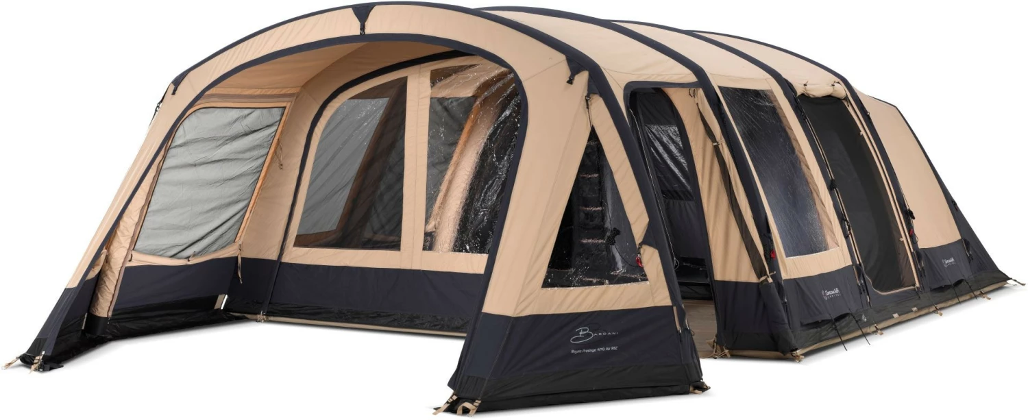 De Bardani Royal Prestige 470 Air RSC opblaasbare tent is een luxe, rechtwandige oppomptent. Deze 100% katoenen tent heeft een extra diepe afsluitbare luifel en afritsbaar kuipgrondzeil. De drie slaapcabines bieden ruimte voor 6 personen