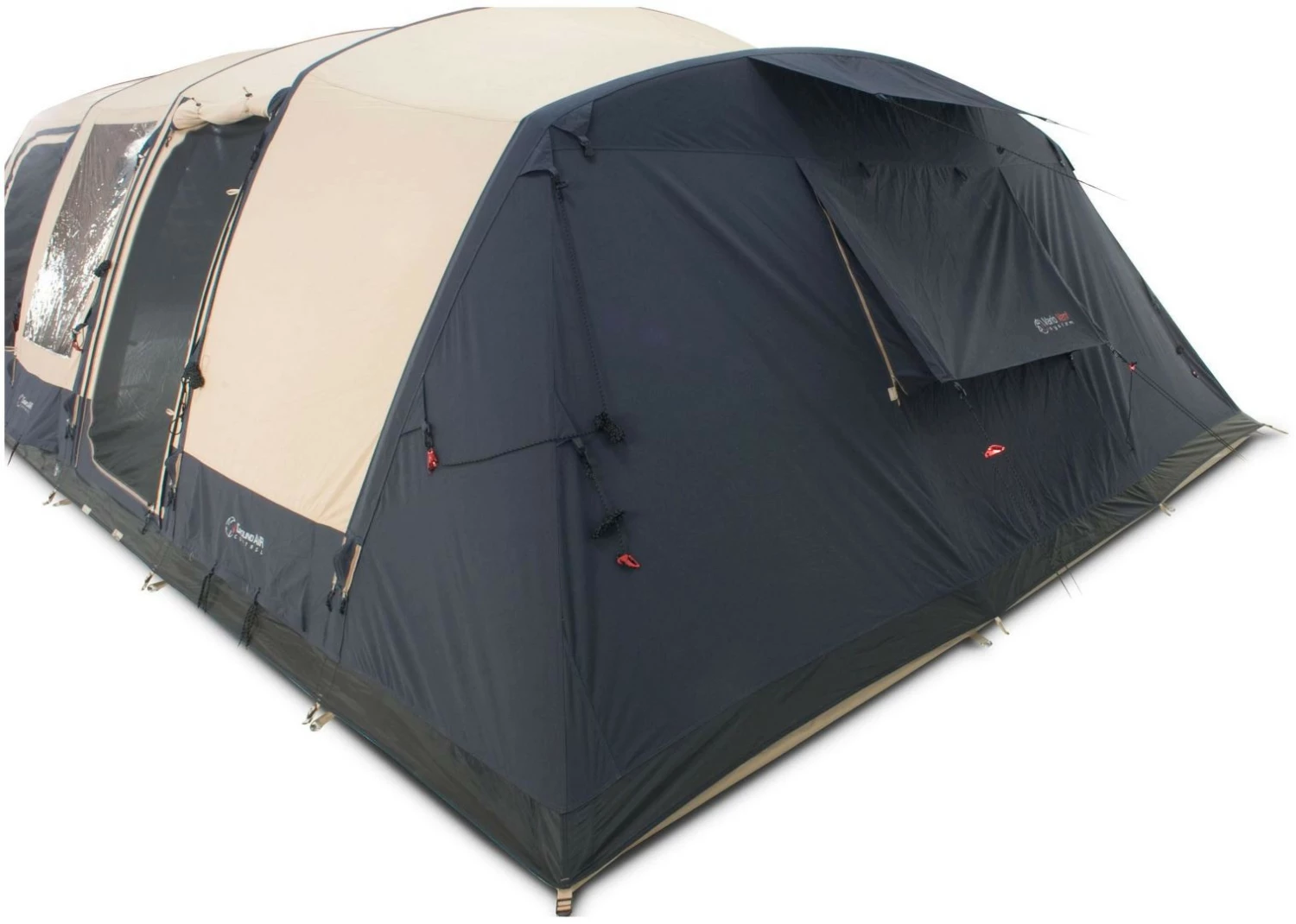 Das aufblasbare Zelt Bardani Royal Prestige 470 Air RSC ist ein luxuriöses, geradwandiges aufblasbares Zelt. Dieses Zelt aus 100 % Baumwolle verfügt über eine extra tiefe abschließbare Markise und eine abnehmbare Bodenplane. Die drei Schlafkabinen bieten Platz für 6 Personen