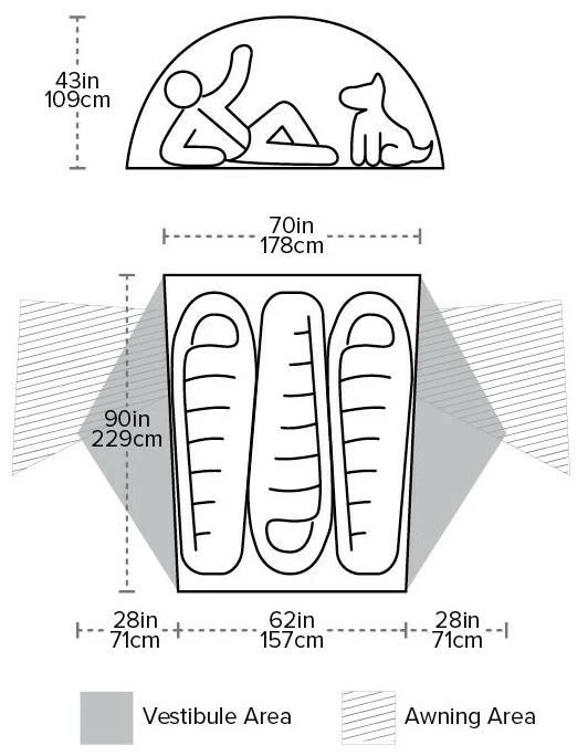 The high volume design provides ample living space in this freestanding structure. Traditional, media, and 3D bin pockets help to organize your gear without cramping your sleep space or capacity to sit up inside. Awning-style vestibules can be customized to expand living space, great for both drizzle and sun protection. Your ultimate UL home away from home.