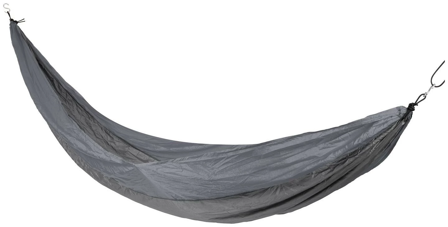 Eine leichte, Reisehängematte aus Fallschirmstoff. Durch den Fallschirmstoff ist die Hängematte luftdurchlässig und nimmt keine Feuchtigkeit auf. Sie bietet optimalen Liegekomfort und da sich diese Hängematte zu einer kleinen Rolle zusammenfalten lässt, ist sie ideal für unterwegs. Im Lieferumfang sind Karabiner, Spannleinen und eine Aufbewahrungshülle enthalten. Einfach zwischen Bäumen oder anderen Aufhängepunkten zu befestigen.
