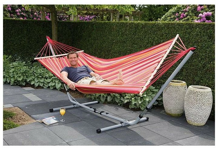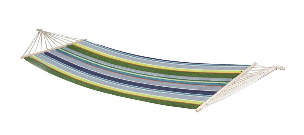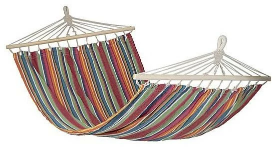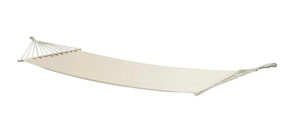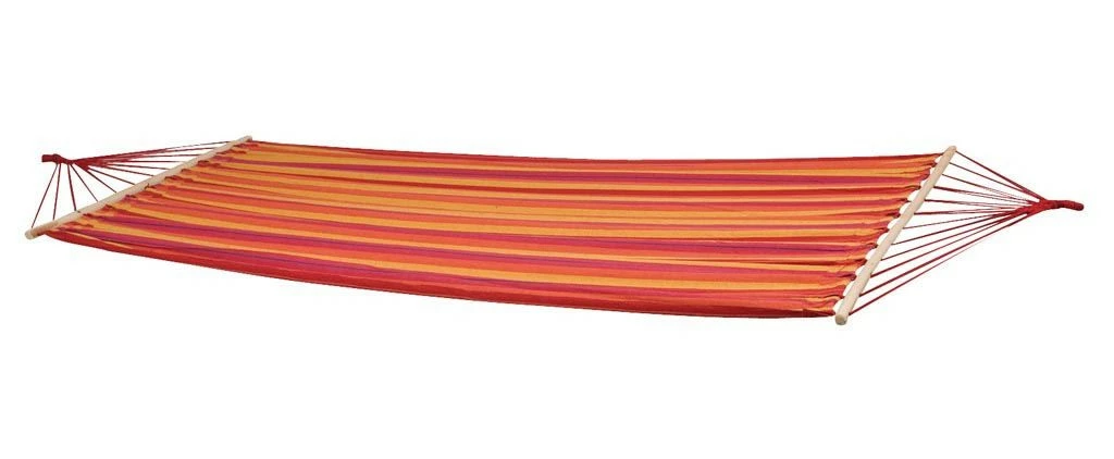 Eine stilvolle und sehr robuste Hängematte. Bringt das echte Urlaubsgefühl hervor! Hergestellt aus robustem 320gr / m² Baumwolle / Polyester. Die Hängematte hat an den Enden eine Spreizstange von 118 cm, so dass der Stoff vollständig offen bleibt.