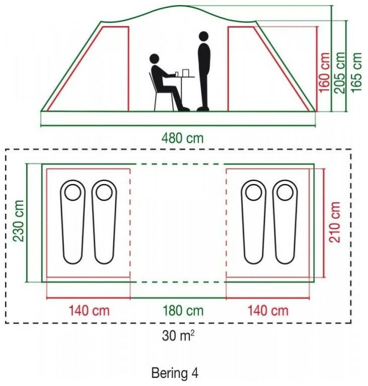| Außenzelt | 100% Polyester |