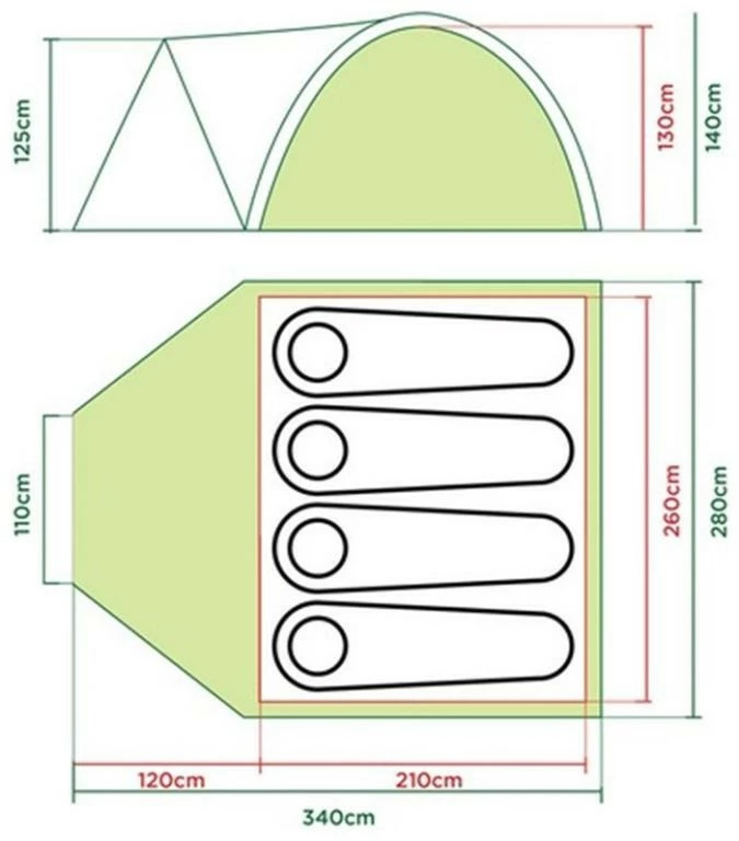 | Innenzelt | 100% atmungsaktiv Polyester |