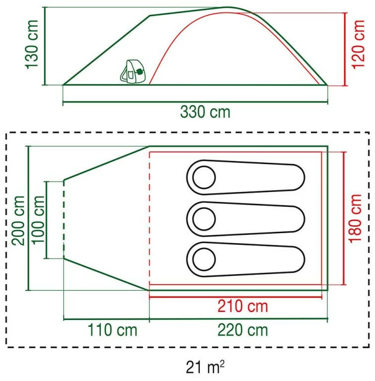 | Innenzelt | 100% atmungsaktiv Polyester |