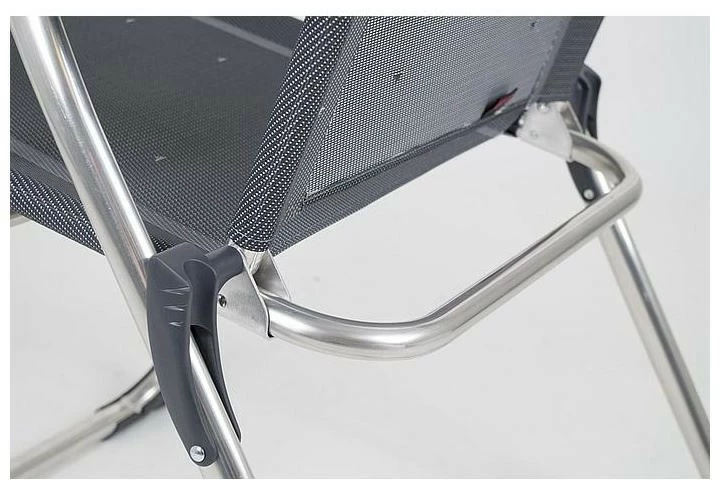Een extreem compacte standenstoel. Ook wel de meest platte kampeerstoel. Deze stoel is zeer plat opvouwbaar tot een dikte van slechts 6 centimeter! Biedt maximaal comfort door de in 7 standen verstelbare rugleuning en een traploos verstelbare hoofdsteun (ruglengte: 65-83 cm). De stoel is voorzien van een U-frame met stabilisatoren en extra dikke buizen voor extra stevigheid en stabiliteit. Eenvoudig opvouwbaar en extra compact op te bergen (lxbxh: 92×63,5×6 cm). Ideaal voor de vouwwagen, buscamper of voor andere kampeerders. Zithoogte: 43 centimeter. Zitdiepte: 41 centimeter. Zitbreedte: 48 centimeter. Maximale belasting: 110 kilogram.
