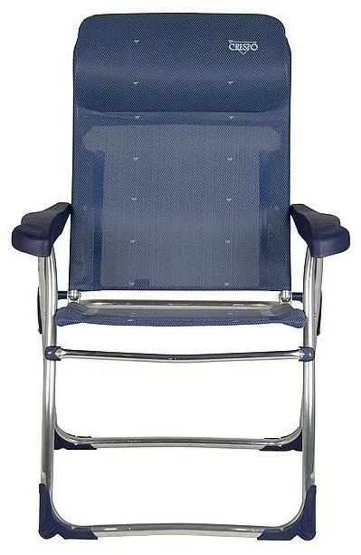 Ein leichter und sehr kompakter, verstellbarer Klappstuhl. Dieser Stuhl bietet dank der 7-fach verstellbaren Rückenlehne und der stufenlos verstellbaren Kopfstütze maximalen Komfort (Länge der Rückenlehne: 65-83 cm). Die Rückenlehne, der Sitz und die Armlehnen sind ergonomisch geformt. Der Stuhl hat einen U-Rahmen mit Stabilisatoren und extra dicken Rohren für zusätzliche Festigkeit und Stabilität. Dank der vollversenkbaren Kopfstütze kann der Stuhl sehr kompakt untergebracht werden. Bis zu 50 % weniger Stauvolumen im Vergleich zu anderen Campingstühlen. Crespo stellt diesen Campingstuhl unter Beachtung höchster Qualitätsstandards direkt in Spanien her und sorgt so für ein langlebiges und verlässliches Produkt.