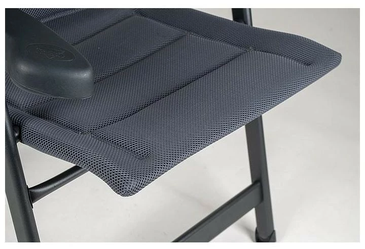 Ein sehr luxuriöser, kompakter und verstellbarer Stuhl. Dieser Stuhl bietet dank der siebenfach verstellbaren Rückenlehne und der stufenlos einstellbaren Kopfstütze maximalen Komfort. Die komfortable 3D-Polsterung des Stoffs ist besonders luftdurchlässig und speichert aufgrund der offenen Zellstruktur keine Feuchtigkeit. Dadurch trocknet dieser Stuhl deutlich schneller als Stühle mit herkömmlicher Schaumstoffpolsterung. Zudem sind Rückenlehne, Sitzfläche und Armlehnen ergonomisch geformt. Der Stuhl ist mit einem eloxierten H-Rahmen ausgestattet, der extra Stabilität und Sicherheit gewährleistet. Der Stuhl ist im eingeklappten Zustand sehr kompakt und dadurch einfach zu transportieren.