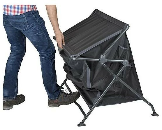 Eine sehr stabile und robuste Kochinsel. Sehr einfach einzurichten dank eines einzigartigen Systems zum Ein- und Ausklappen dieses Schranks! Dieser Koch-/Lagerschrank hat ein graues Melaminregal. Das macht es hitzebeständig und wasserdicht. Das Aluminiumgehäuse ist stilvoll schwarz. Der Bezug besteht aus extra robustem 400 Denier Polyester mit 4 praktischen Fächern, 4 Seitentaschen und einem Mesh-Fenster auf der Rückseite. Die verstellbaren Beine mit Stabilisatoren können separat verstellt werden, so dass das Regal auf jeder Oberfläche stabil ist. Der Schrank wird in einer Tragetasche geliefert.