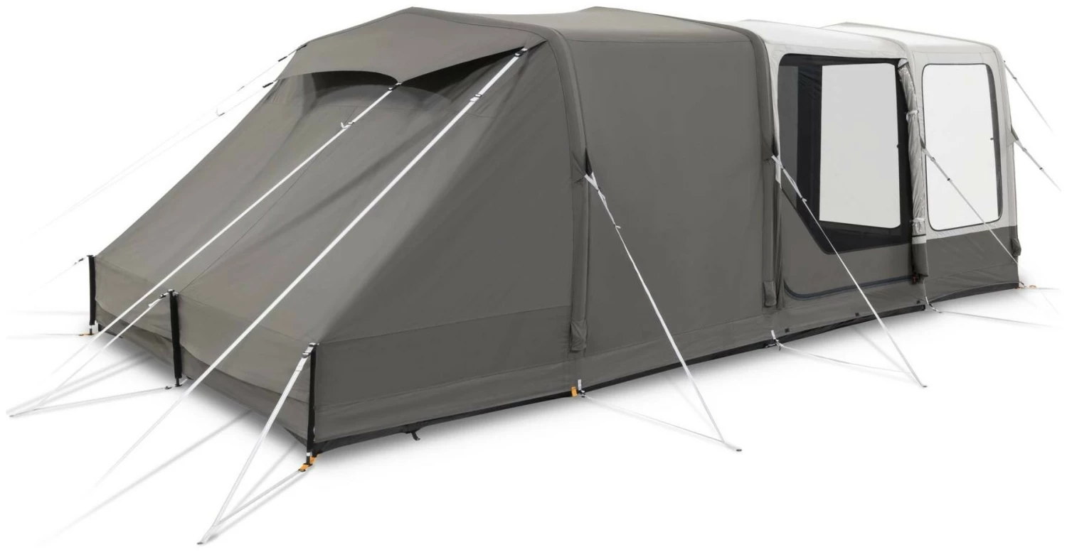 Das Dometic FTX 401 Ascension TC-Zelt ist ein geräumiges, aufblasbares 4-Personen-Tunnelzelt aus Weathershield technischer Baumwolle. Die Schlafkabinen sind 140 und 160 cm breit und 220 cm lang. Hinter den Schlafkabinen befindet sich ein 60 cm tiefer Gepäckraum. Durch die Aufbewahrung von Koffern und Taschen bleibt die Schlafkabine ordentlich und organisiert.