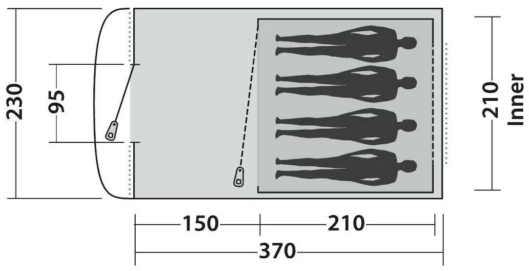 Mit Schlafplätzen für bis zu vier Camper ist das Easy Camp Edendale 400 das perfekte Tunnelzelt für junge Familien. Die Fiberglasstangen sind schnell und einfach aufzustellen und machen das Zelt leicht und auch leicht zu handhaben. Sie können ganz einfach durch die Haustür eintreten, während das schöne Baldachin Sie vor den Elementen schützt. Der abgedunkelte Schlafbereich Sleep Tight schirmt das Außenlicht ab, damit Sie sich entspannen und eine gesunde Nachtruhe genießen können. Aufgrund der vollen Höhe gibt es im Wohnbereich viel Platz zum Entspannen, mit Fenstern an der Vorderseite und an der Seite. Dank der flexiblen Belüftungsmöglichkeiten können Sie die Luftzirkulation nach Bedarf einstellen.