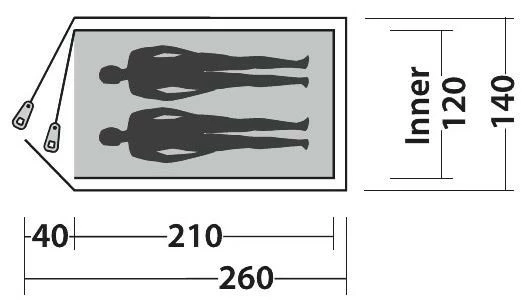 | Außenzelt | 180t Polyester mit PU Coating. Flammschutzmittel, 100% Polyester; 2000 mm |