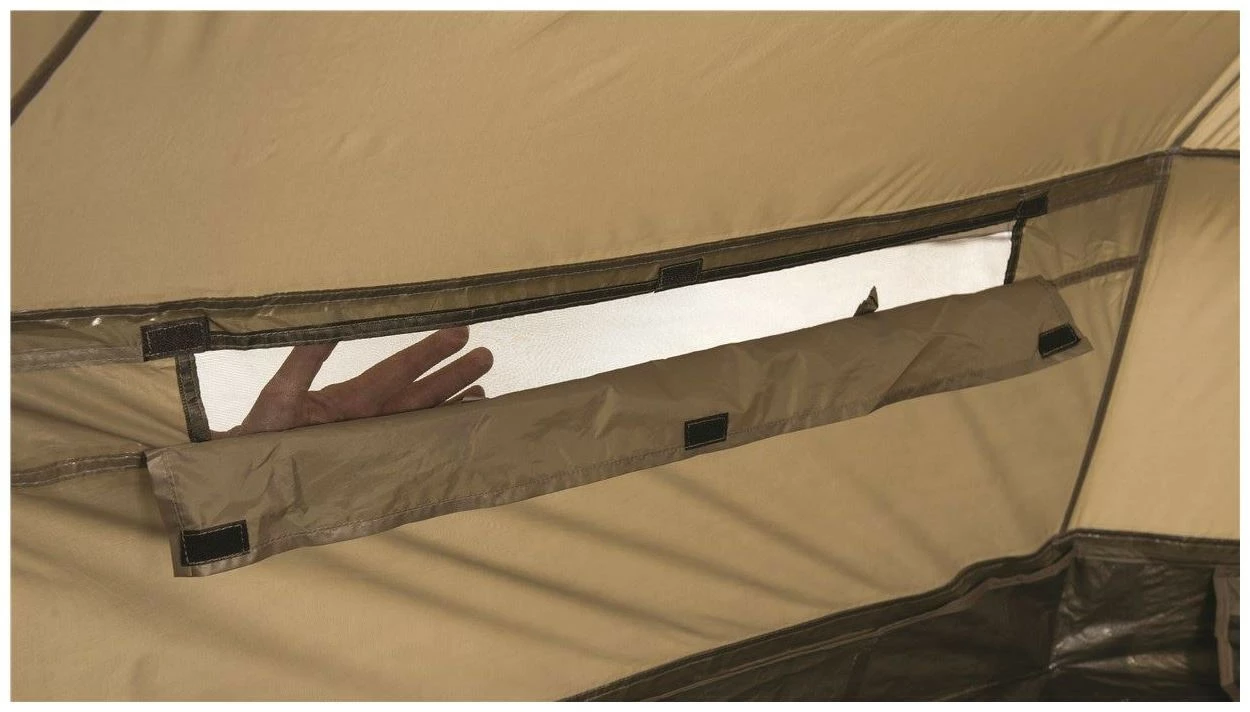 Front door mesh windows and mesh panels with curtains under the eaves makes it easy to adjust the ambience to suit the campers mood. Once pitched, stamp your own style and enjoy!