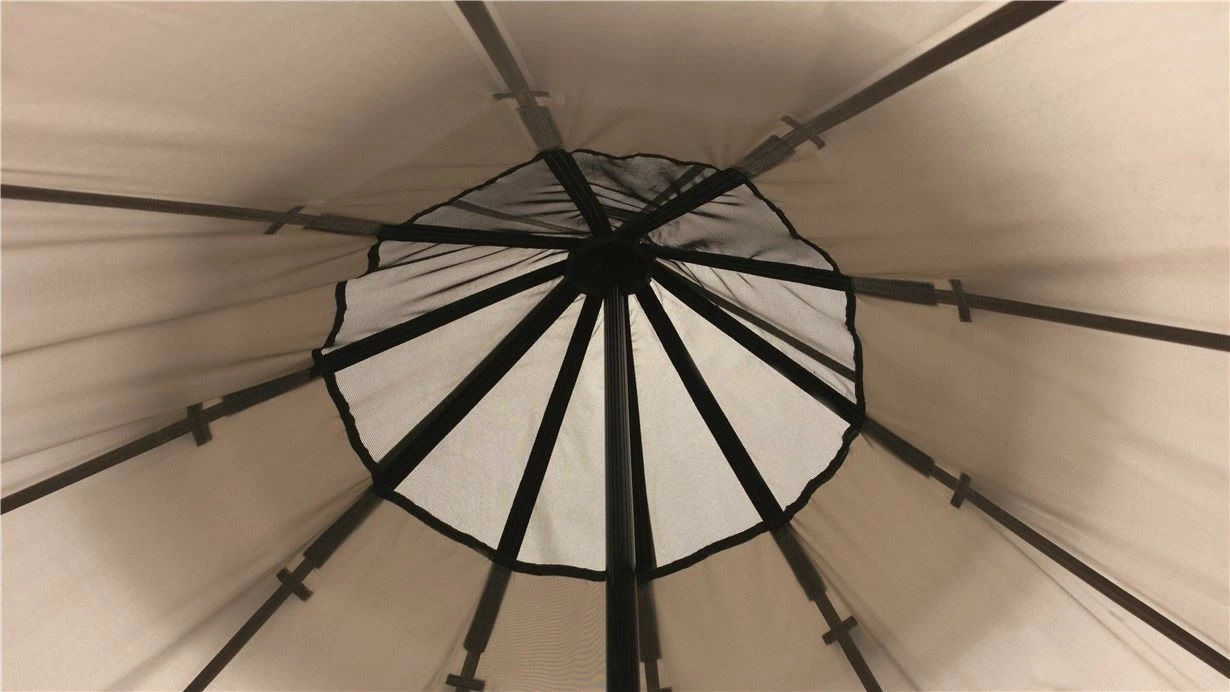 Mesh vent under the apex hood, with a plastic ring to hold its shape, and low covered vents ensure ample ventilation and easily adjustable fresh airflow.