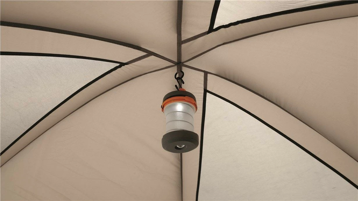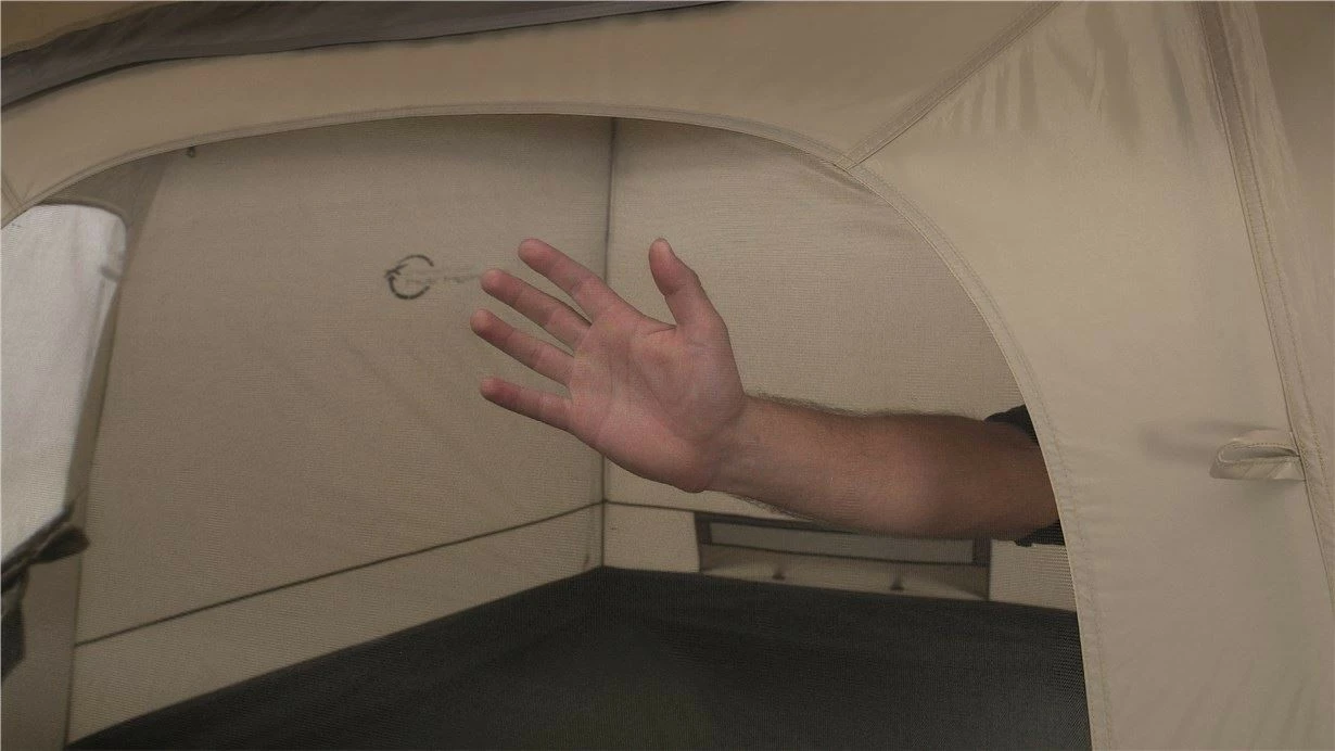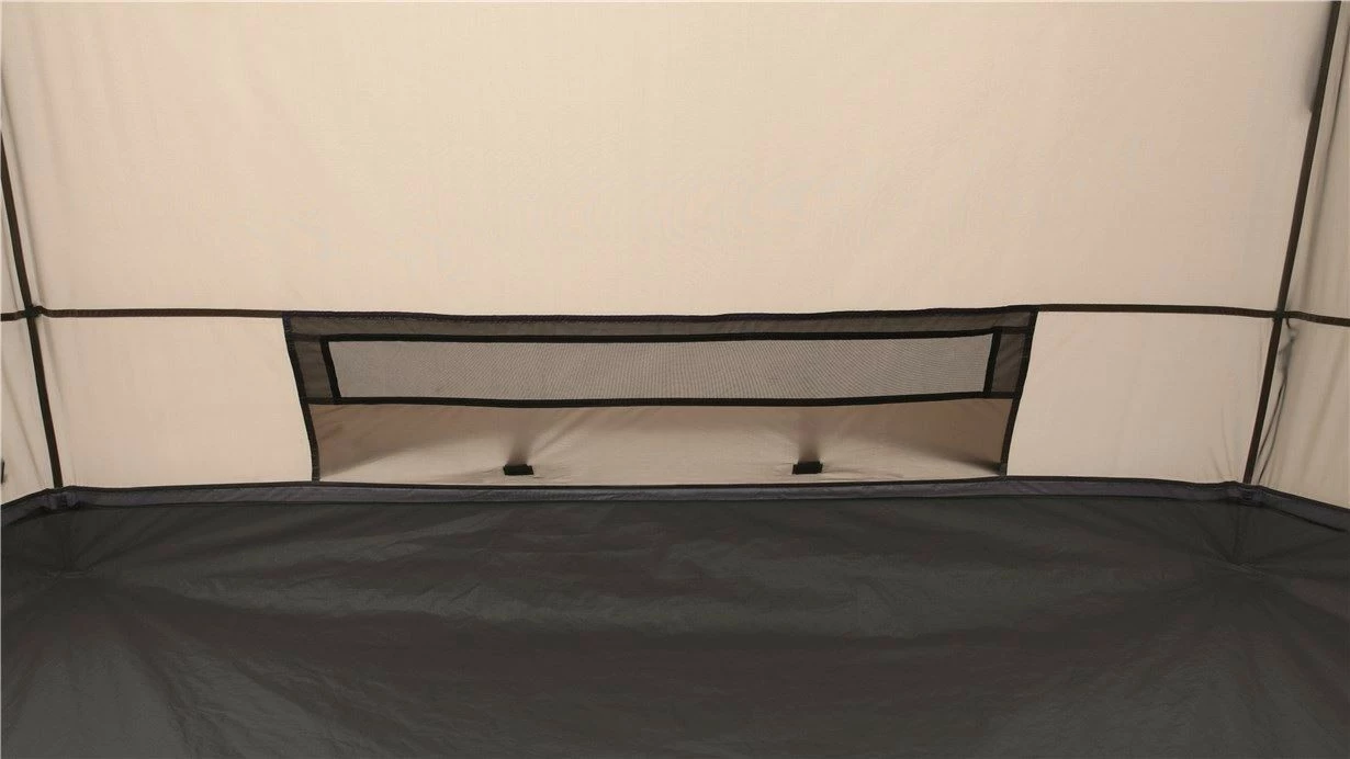 Large mesh panels under the flysheet cap, a mesh window in the door, with a toggle-up curtain, and covered rear vent ensure ample ventilation and easily adjustable fresh airflow.