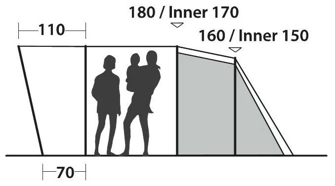 | Außenzelt | 185t Polyester mit PU Coating. Flammschutzmittel, 100% Polyester; 3000 mm |