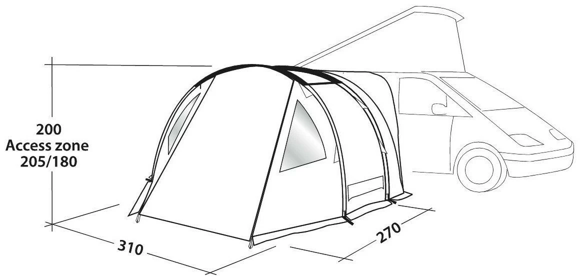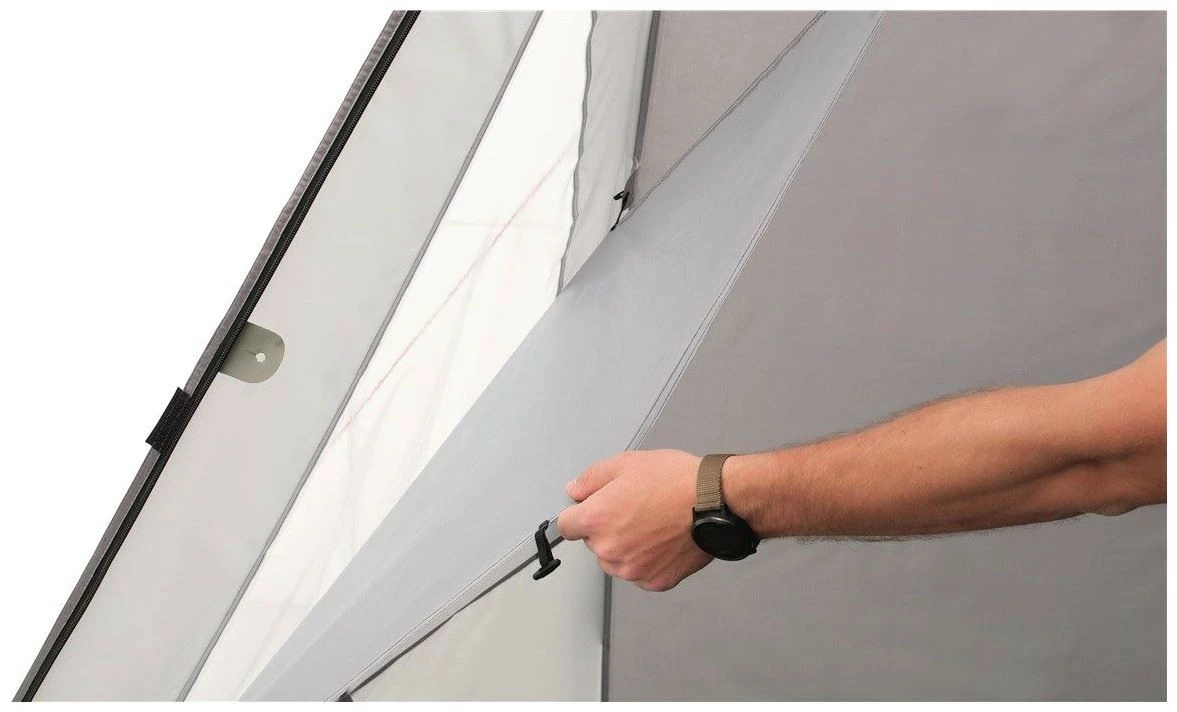 Shamrock ist eine vielseitige Markise zum Wegfahren mit vorgewinkelten Fiberglasstangen und äußeren Fiberglasstangen für Stabilität und Spannung des Zeltgewebes. Mit voller Stehhöhe, vorgehängten Fenstern, einer großen Vordertür, die als zusätzlicher Unterstand aufgestellt werden kann, einer großen Hintertür, seitlichen Lüftungsschlitzen und einer großen, umklappbaren Bodenplane, ideal für ausgedehnte Touren.