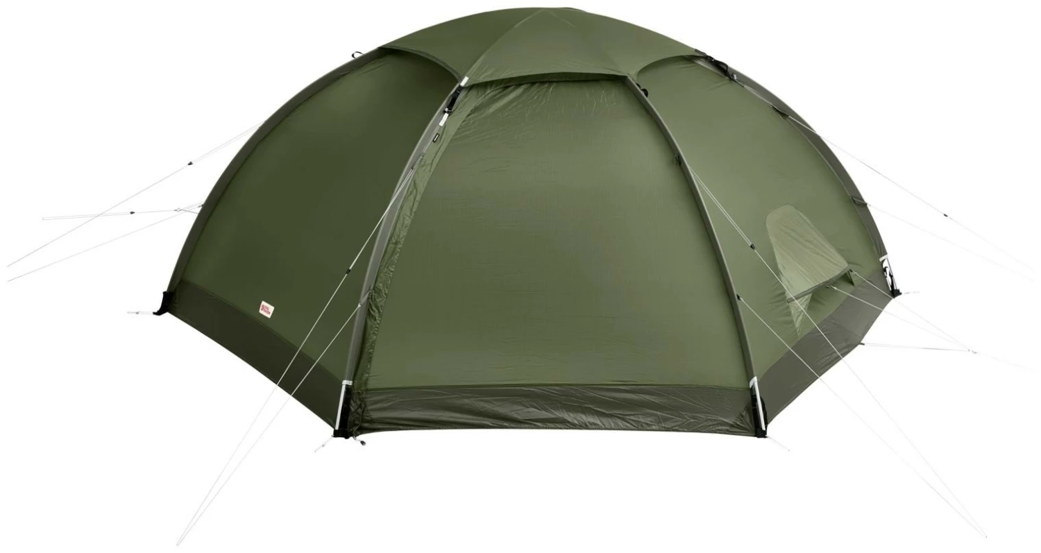 Er is ook meer dan voldoende ruimte voor uitrusting, koken en activiteiten bij slecht weer. De binnen- en buitentent worden tegelijk opgezet. De driestokkenconstructie maakt de tent zelfdragend en gemakkelijk overal op te zetten. Gebruik de scheerlijnen om de tent te verankeren en te stabiliseren bij harde wind. De sleuven voor de tentstokken hebben een kleurcodering die het opzetten vereenvoudigt. Bovendien zijn ze breed genoeg voor het gebruik van dubbele stokken (een accessoire) zodat de tent ook bestand is tegen extreme omstandigheden. De tent heeft een comfortabele zithoogte en een goede ruimte om te socializen. In de binnentent zitten een afneembaar mesh vak en diverse andere mesh vakken om spullen in op te bergen. Grote ingangen met extra-fijn muskietengaas maken het mogelijk om vanuit je slaapzak van het uitzicht te genieten zonder dat er insecten binnenkomen. Afsluitbare ventilatieopeningen op verschillende hoogtes zorgen voor een optimale luchtcirculatie. De mogelijkheid om de buitendeur halfopen vast te zetten, maakt deze tent tot een uitstekende keuze voor een tropisch klimaat. De buitentent is gemaakt van het nieuwe high-performance TripleRip nylon van Fjällräven. Een innovatieve constructie combineert twee verschillende stofdiktes; 20 denier voor de bovenkant en 40 denier voor de onderkant waar de meeste slijtage plaatsvindt. Dit maakt de tent uitzonderlijk sterk ondanks zijn lage gewicht. Net als alle tenten van Fjällräven is de Abisko Dome 2 geheel zonder PVC en giftige vlamvertragers gemaakt. De impregnering is vrij van fluorkoolstoffen.