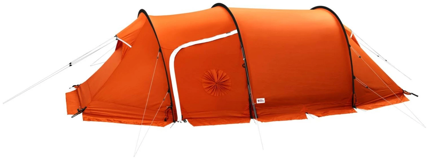 Daarnaast zorgt de sterke 75D polyester stof voor een tent die niet te lijden heeft van vocht of temperatuurschommelingen. Perfect voor lange toerskitochten en andere avonturen in veeleisende winterklimaten. Een aantal speciale functies vergemakkelijken het leven in de tent en maken het mogelijk om snel een kamp op te slaan en beschutting te vinden. Met silicone behandelde sleuven voor tentstokken en booghouders met een quick-release-systeem, zodat het opzetten en afbreken van de tent snel en gemakkelijk gaat. Sneeuwflappen rond de tent voorkomen dat er poedersneeuw in de voortent en binnentent stuift. Met sneeuwopeningen in beide tentdeuren kun je met een pannetje wat sneeuw scheppen om te smelten zonder dat je de geborgenheid van de tent hoeft te verlaten of dat er wind en sneeuw in de leefruimte komt. Ook kun je door de sneeuwopeningen gemakkelijk uitrusting uit de leefruimte aangeven aan expeditieleden die buiten de tent aan het werk zijn. Sterke, reflecterende scheerlijnen van Dyneema, met dubbele verstelmogelijkheden zodat de lengte op twee plaatsen aangepast kan worden. Praktisch wanneer de haringen onder een laag sneeuw en ijs verdwenen zijn. De tentharingen zijn extra lang (20 cm) en stevig voor een stabiele verankering in moeilijk terrein. Hoogte in de gehele binnentent en in de extra grote leefruimte is plek voor bagage, om te koken en voor andere taken. Eén kledinglijn in de leefruimte en drie in de binnentent om je uitrusting te kunnen drogen. De tien meshvakken houden kleine spullen netjes opgeborgen. Grote, hoog geplaatste ventilatieopeningen zorgen voor een optimale luchtcirculatie en minimaliseren condensvorming. Ze kunnen ook helemaal afgesloten worden, mocht dat nodig zijn. De oranje kleur van de tent is gekozen voor een goede zichtbaarheid in winterse landschappen. Door de extra grote reflecterende delen is de tent zichtbaar in het donker. Een zak voor sneeuwharingen (een accessoire) wordt meegeleverd.