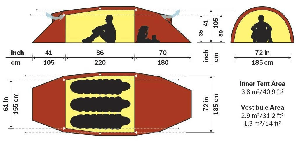 De binnentent deuren en de zijdeur zijn voorzien van extra gaasdeuren achter de gewone deuren, waardoor muskieten en andere ongedierte geen kans krijgen om binnen te kruipen. De tent ventileert erg goed, ook bij gebruik in de sneeuw. Doordat de binnentent gekoppeld is aan de buitentent zet je hem erg snel op. Zelfs de (optionele) footprint kan je laten zitten!
