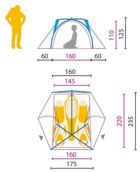 | Außenzelt | 100% Polyamid, silikonisierte ht Nylon ripstop 20d, 1500 mm |