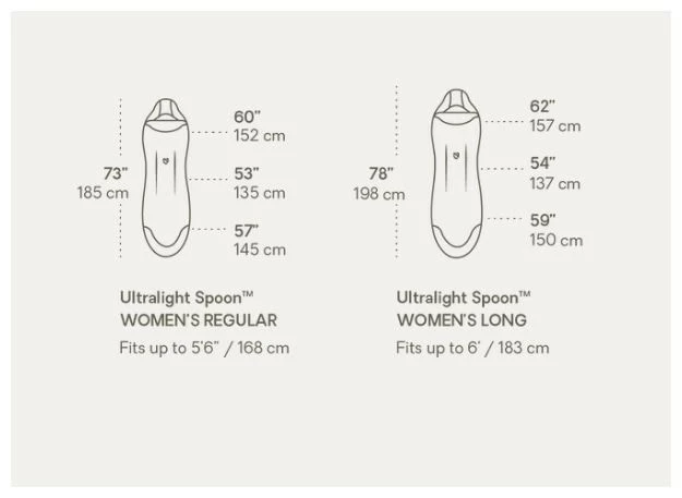 The classic Spoon™ shape provides a generous cut at the elbows and knees so side sleepers can shift positions comfortably throughout the night, while still packing remarkably small.