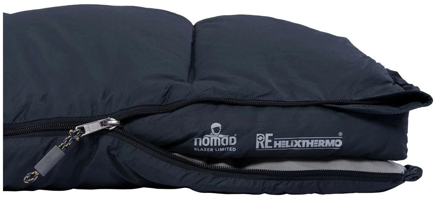 The NOMAD® Blazer Limited is a high-quality cotton blanket-model sleeping bag with a 100% recycled filling; comfort is absolutely key. The Blazer is a genuine icon. This was the first sleeping bag NOMAD® made 45 years ago, and we are still working with the very same tried and trusted formula. Sleeping under the NOMAD® Blazer Limited feels like lying under your own duvet at home, so this blanket sleeping bag is your best choice..