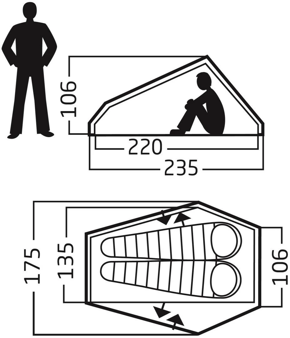 | Außenzelt | 100% Polyester, 3000mm |