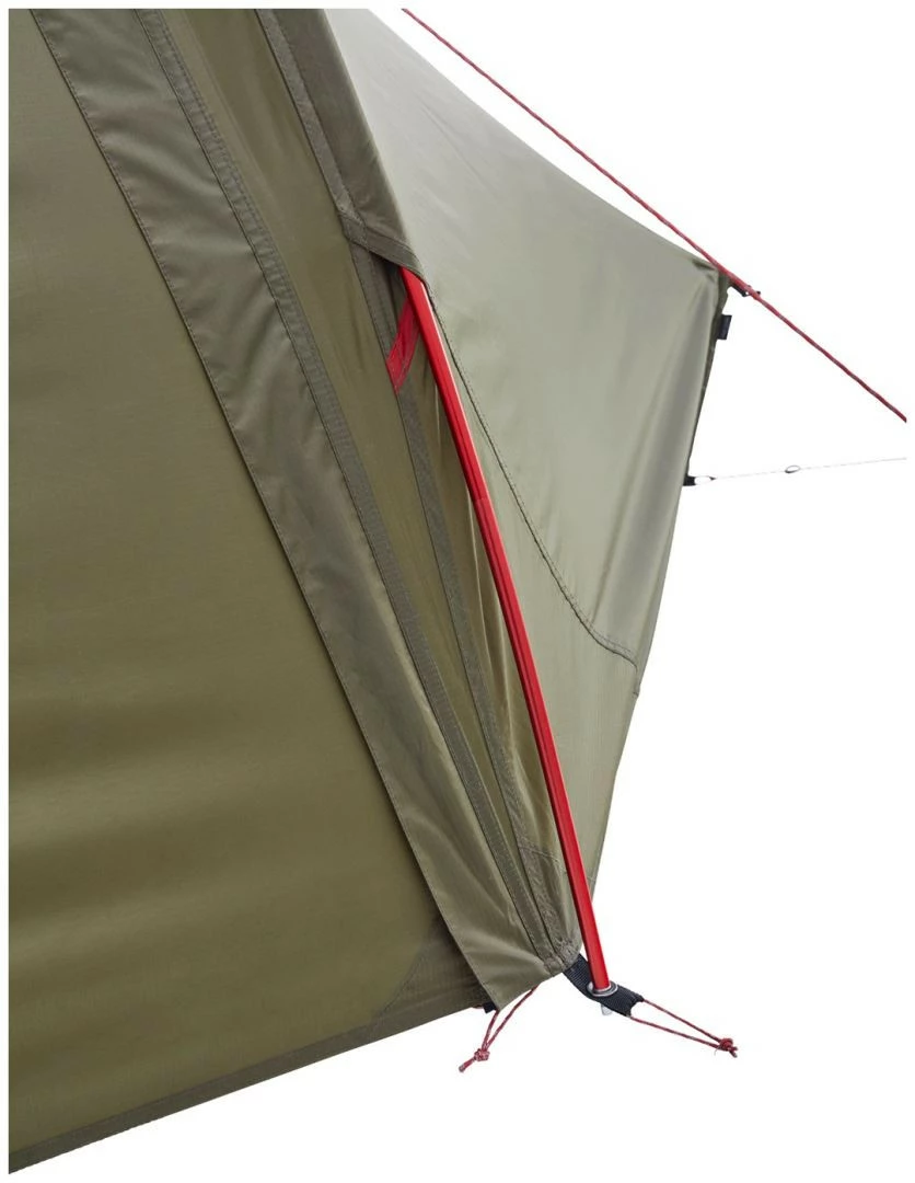 Abgesehen davon, haben wir alle großartigen Eigenschaften des klassischen Nordisk Telemark beibehalten: Er ist hervorragend belüftet, verfügt über leicht verstellbare Abspannseile, einen magnetischen Schnellverschluss, Innentaschen zur Aufbewahrung und vier eingenähte Stangen in den Ecken. Außerdem besteht die Möglichkeit, die beiden Außentüren mithilfe der zwei zusätzlichen Ministangen und des mitgelieferten zusätzlichen Abspannseils in einen geschützten Kochbereich umzuwandeln.