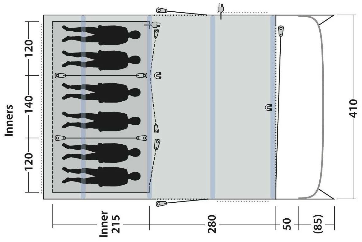 De Outwell Avondale 6PA biedt een panoramisch uitzicht en is bij uitstek geschikt voor lange vakanties tijdens het hele kampeerseizoen. Perfect voor grotere gezinnen die vooral behoefte hebben aan veel ruimte en gebruiksgemak. De diepe luifel heeft zijvensters en bestrijkt de geheel te openen voorkant. Zo kun je buiten gezellig relaxen. Ook kun je de frontpanelen aan weerszijden van de luifel met haringen uitzetten of juist wegrollen voor een flexibele beschutting. De ventilatie in de lichte, luchtige tent laat zich simpel regelen: in een handomdraai creëer je een gezellige sfeer wanneer iedereen bij elkaar komt om te eten, spelletjes te spelen en te relaxen.