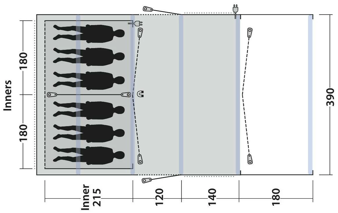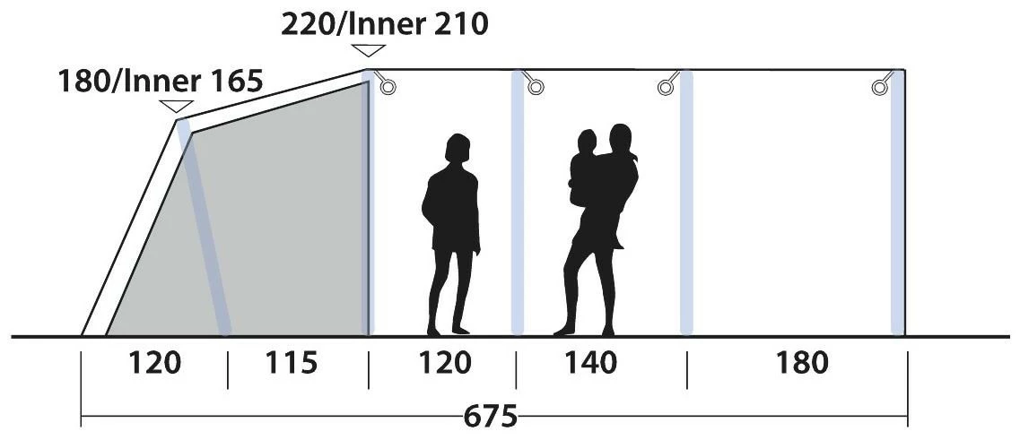 Das Birchdale 6PA verfügt über zwei Premier-Schlafkabinen mit Panorama-Aussicht, in denen bis zu sechs Personen schlafen können. Damit bietet das Zelt reichlich vielseitig nutzbaren Platz für das Familiencamping. Unter dem 180 cm tiefen Vordach sorgt sein schräger Vordereingang für einen leichten Zugang und eine optimale Platzausnutzung. Über die zwei Seiteneingänge mit Netzstoff und die niedrig angeordneten Lüftungsöffnungen lässt sich das Zelt gut belüften. Inklusive Sturmbändern für zusätzliche Stabilität.