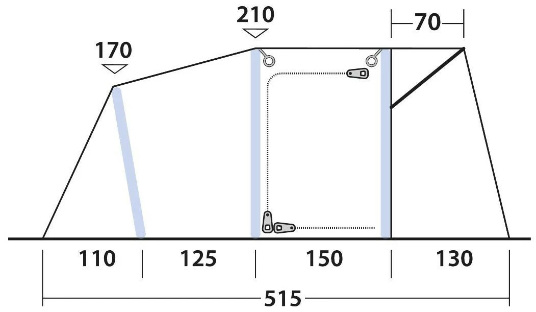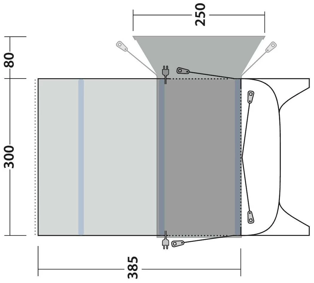 Offering families valuable extra campsite living and sleeping space, the inflatable Outwell Blossburg 380 Air drive-away is pitched in parallel alongside your campervan for a smaller pitch footprint. Its smart removeable access zone allows you to attach it to either side of your campervan, and orient it front to back as you like.