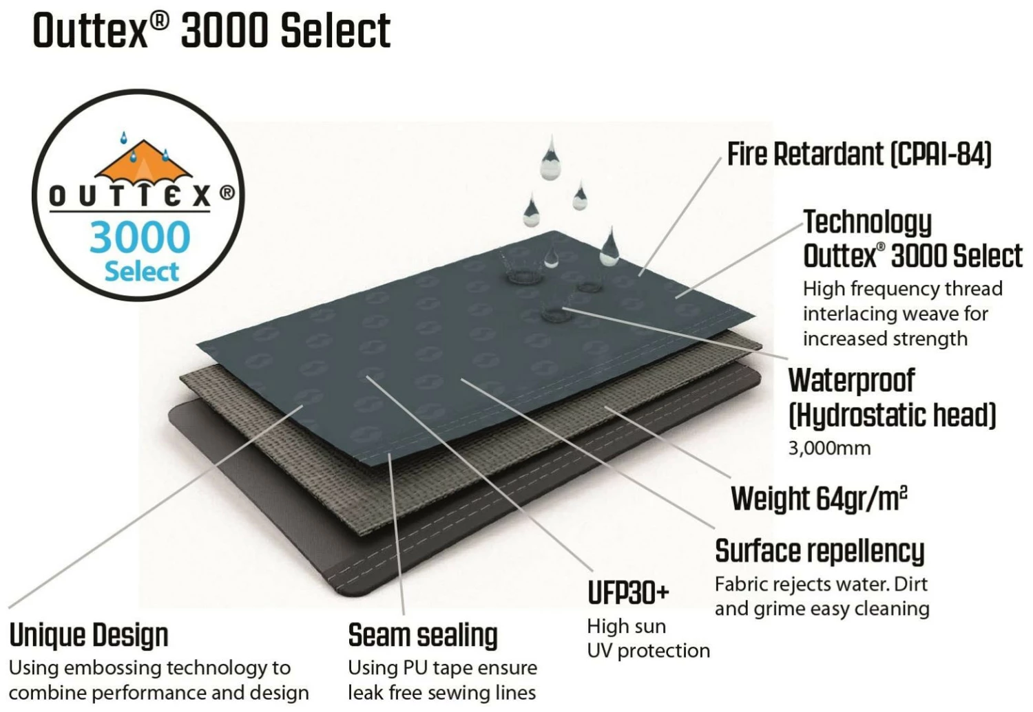 | Außenzelt | Outtex® 3000 auswählen, 100% Polyester; 3000 mm |