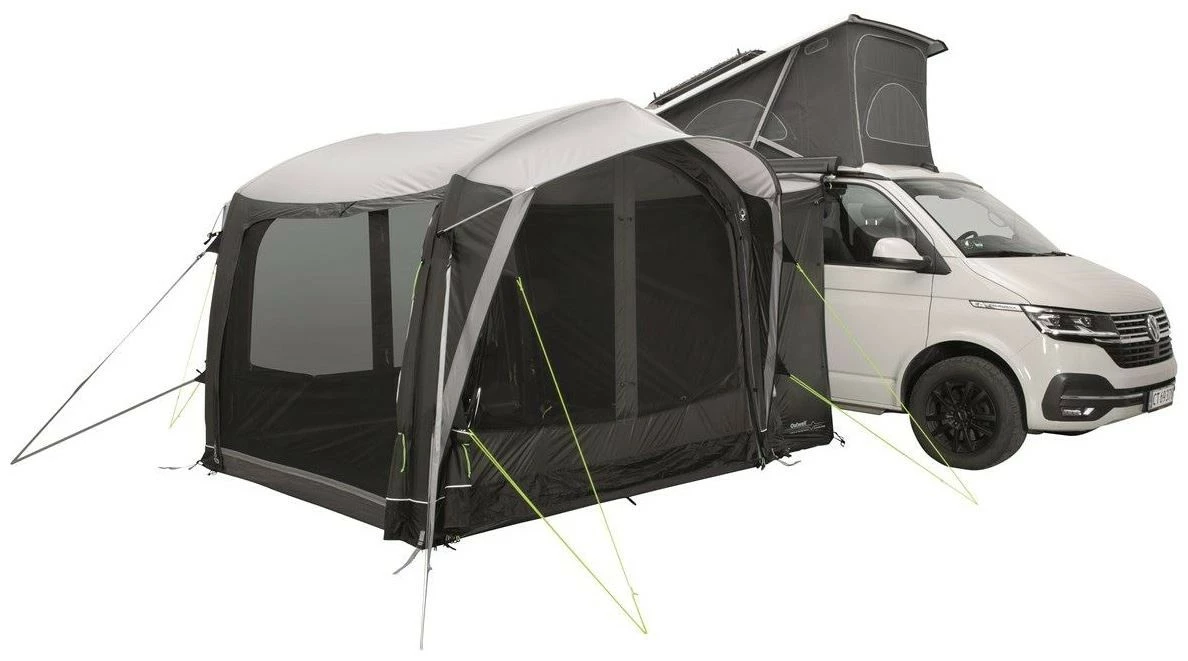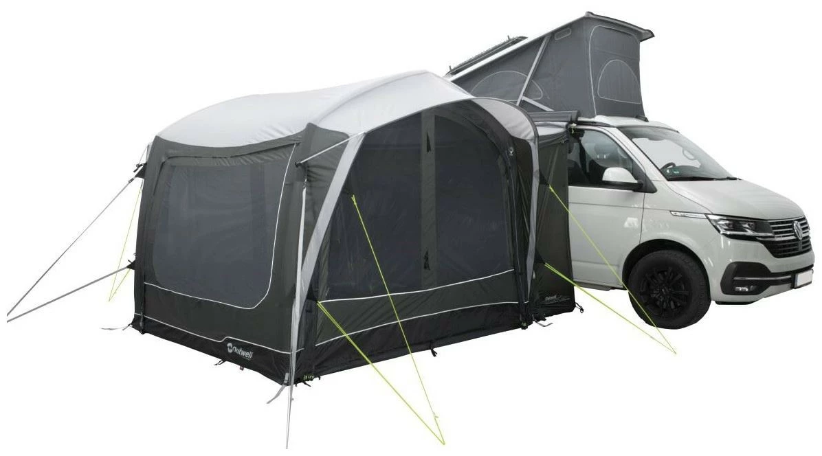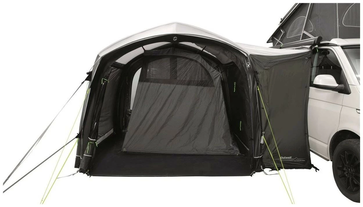 Offering welcome extra recreational and sleeping space, couples and young families will love the sleek design, air tube stability and practical versatility of the Outwell Crossville 250SA compact, parallel-mounted, drive-away vehicle awning. Rainsafe canopies over both front and rear doors offer easy access plus plenty of protected ventilation even in bad weather.