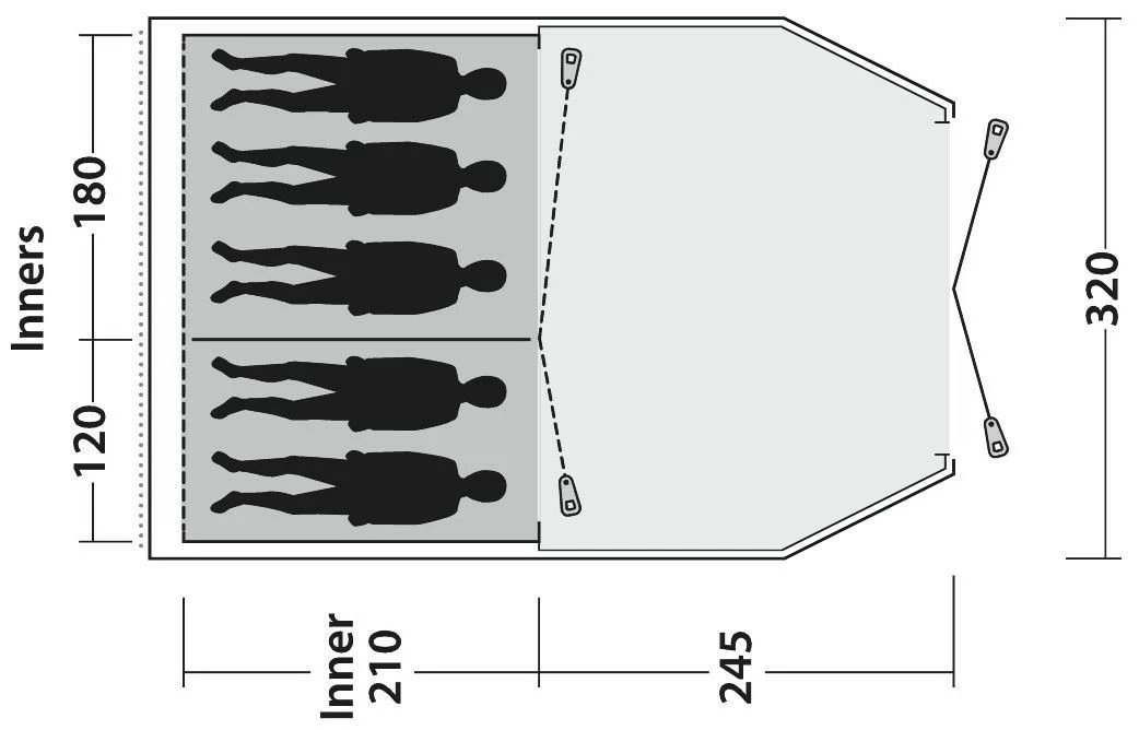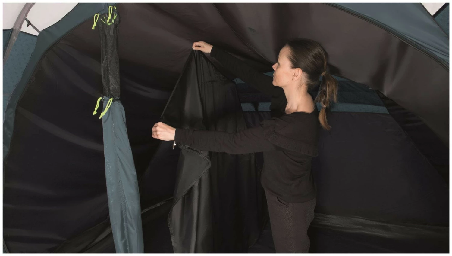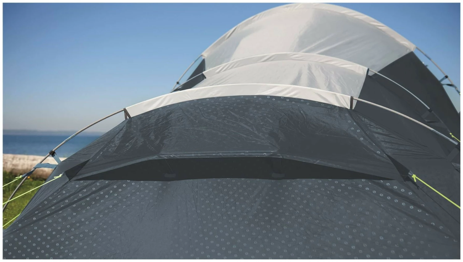 Of u nu rondtrekt met uw gezin of met vrienden, of op één camping verblijft, u zult de stahoogte in het woongedeelte van de Outwell Dash 5-tunneltent met twee kamers zeker waarderen. Er is ruimte voor vijf personen in twee slaapkamers voor meer privacy en een groot getint zijraam biedt u zicht op de buitenwereld als u de rits dicht hebt.