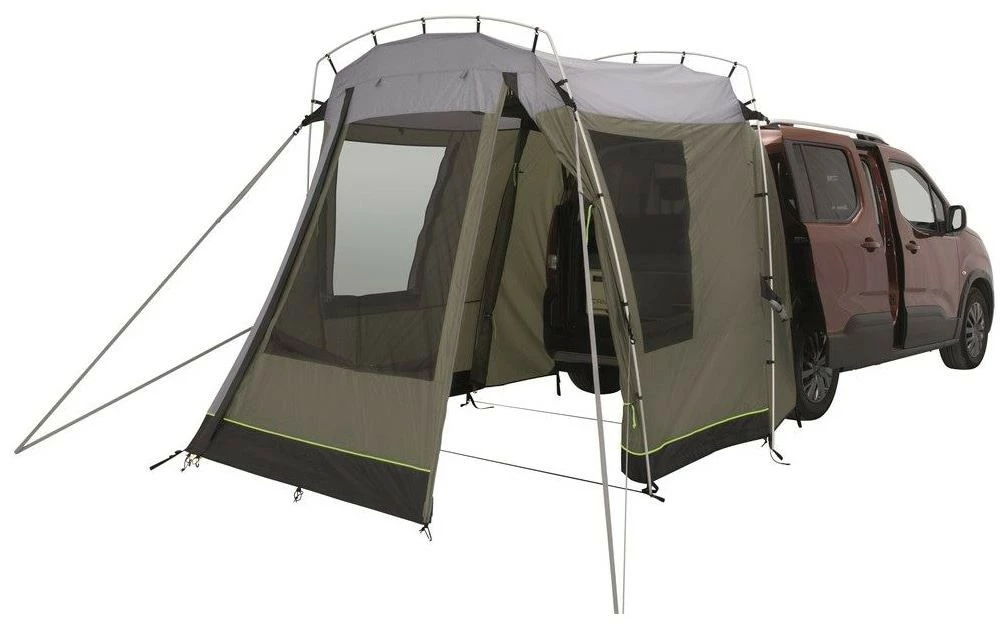 An ideal choice for couples and families seeking to extend the use of small vans on outdoor adventures, the tailgate-mounted Outwell Dunecrest vehicle awning offers great standing height, large mesh windows with waterproof curtains, detachable groundsheet, easy access and the option to use the main door as a canopy.