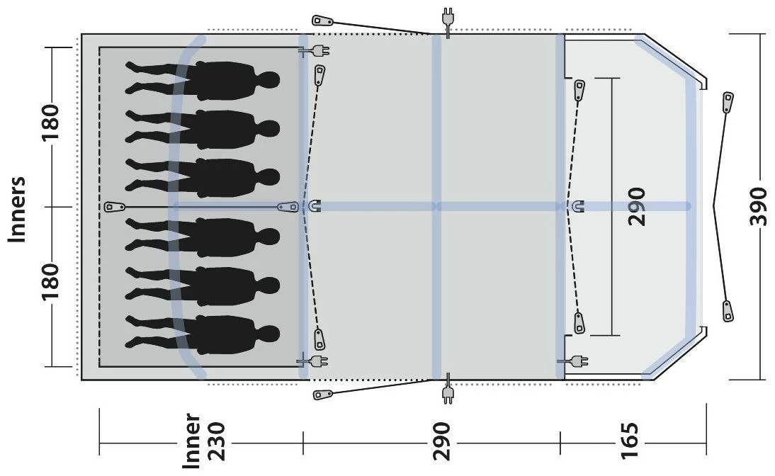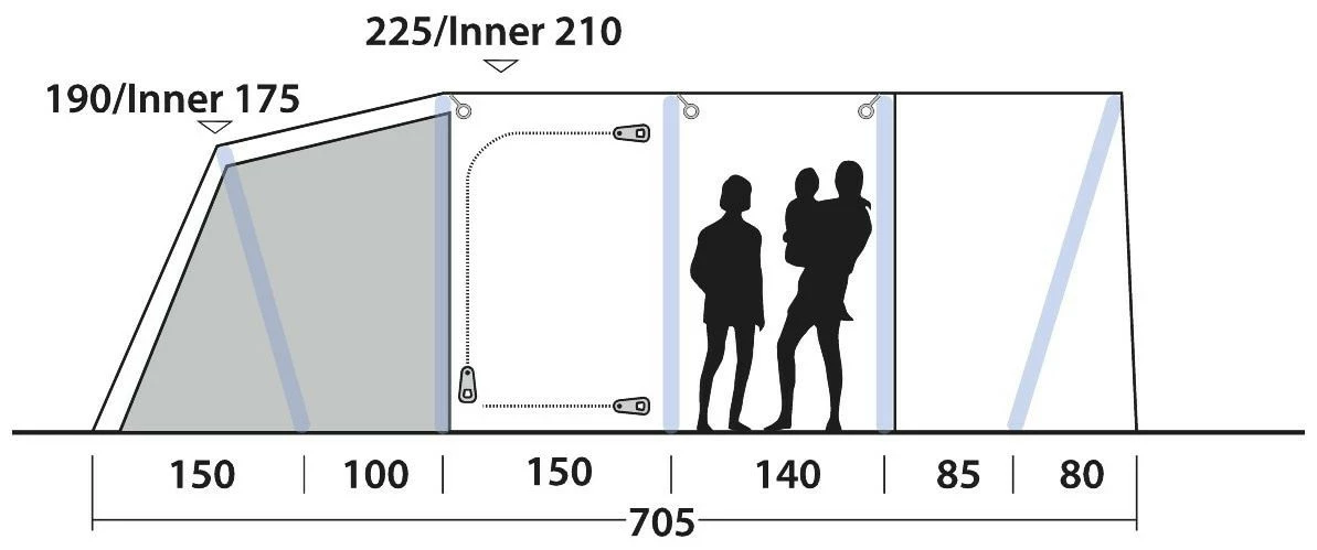 Flexibility is key as you not only get a large living area but also a spacious wet zone for changing and storage of outdoor gear. Packed with innovative features, the steep front design maximises the usable floor space of the wet zone and offers more headroom. Super stable, its a tent that meets all your needs for a perfect camping trip with plenty of room for everyone in comfort and style.