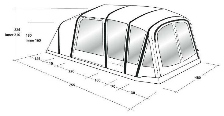 The Outwell Jacksondale 7PA inflatable tent is an ideal campsite base for larger families and groups of friends enjoying active outdoor adventures together. Easy to pitch with flexible access through the Rain Safe side door entry. Whether for long camping holidays or shorter breaks, youll find the smooth profile ensures excellent stability in high winds.