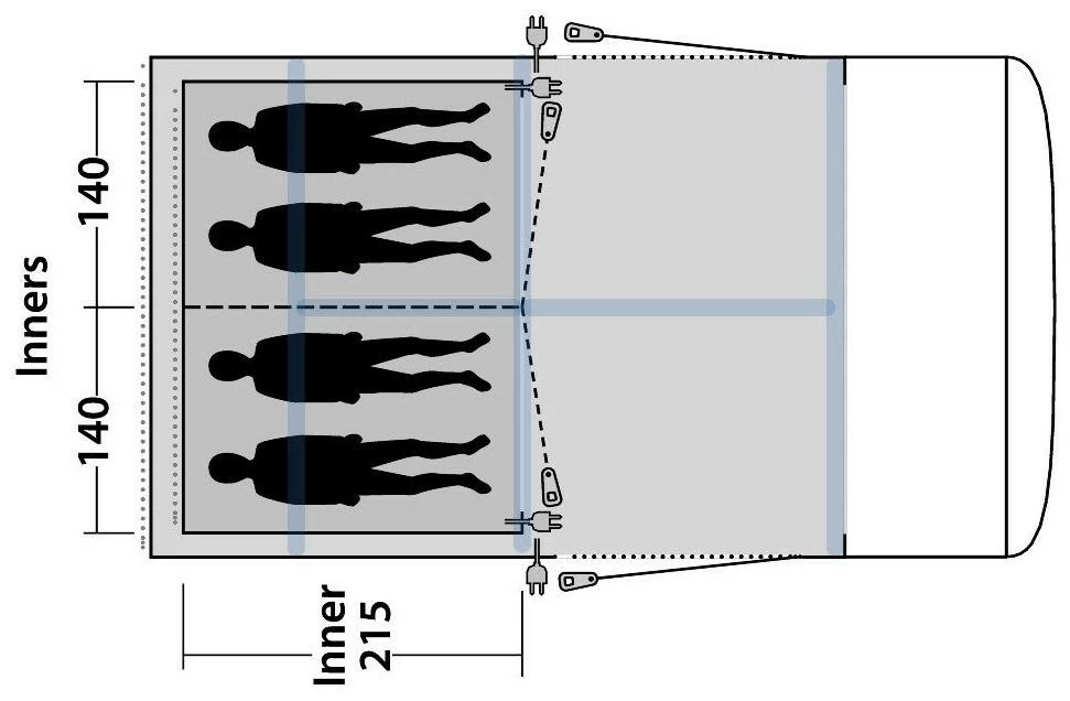 The Outwell Inner Jonesville 440SA gives you a bedroom to fit the larger Jonesville 440SA drive away awning. The inner is easy to set up and take down, and is the perfect size to make use of all available space. The inner sleeps up to four people, can be divided with the supplied internal divider and offers privacy from the main awning. Ideal for growing families, visiting guests or as a spacious bedroom for yourself.