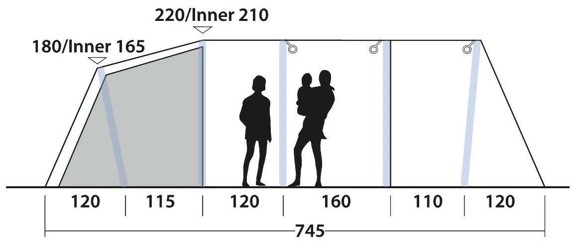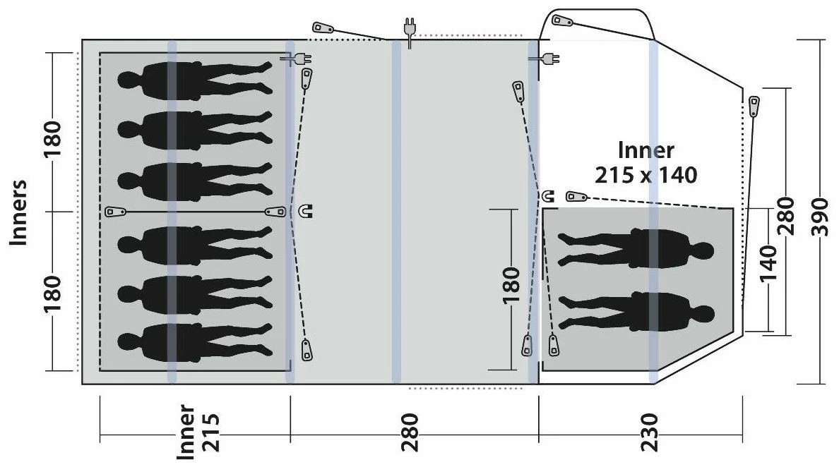 Das große, luftige Drei-Zonen-Zelt Knightdale 8PA beherbergt bis zu acht Personen in zwei Premier-Schlafkabinen mit Panorama-Aussicht. Eine dritte Schlafkabinen kann in der äußeren Zone eingerichtet werden, um den Wohnbereich optimal auszunutzen. Außerdem sind die Verbindungen zwischen den äußeren und inneren Zonen mit dem Quick & Quiet Access versehen. Das Rear Ventilation System bietet verschiedene Belüftungsmöglichkeiten: von vollständig geöffnet bis dicht verschlossen dank Reißverschluss.