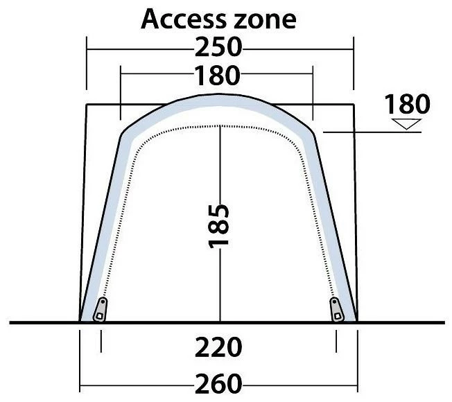 Das aufblasbare, frei stehende Kuppel-Vorzelt Milestone Dash Air ist ideal für kleinere Campingplätze. Es bietet das kleinste Packmaß aller Modellreihen und eignet sich daher perfekt für Rundreisen. Das Vorzelt lässt sich dank der Link Access Zone mit Gewebebahn zur Höhenverstellung an der Innenseite schnell und einfach an Bussen mit einer Höhe zwischen 175 und 200 cm anbauen. Die Zone bietet darüber hinaus auf beiden Seiten Türen, die die flach zusammenfaltbare Vordertür ergänzen. Diese ist mit einem Moskitonetz ausgestattet und sorgt so für sorgenfreie Erholung. Die Sturmbänder aus Gewebe erhöhen die Stabilität bei Wind. Zusätzliches Innenzelt erhältlich.