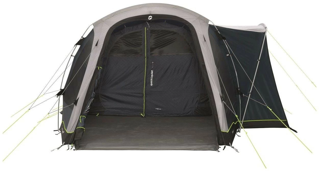 Das leichte und luftige Outwell Nevada 5PE ist beliebt als Basis für aktive Familien, die gerne auf Outdoor-Abenteuer gehen. Das Zelt lässt sich einfach aufstellen, verpacken und transportieren und ist daher ideal für Wochenenden und lange Ferien. In den letzten Jahren hat sich dieses Zelt aufgrund seines Rufs für ein stilvolles, voll ausgestattetes Zelt mit hervorragenden Funktionen zu einem wahren Camping-Champion entwickelt. Charakteristisch für das Nevada-Design ist die praktische regensichere Seitentür mit Markise. Es ist ein willkommener Zufluchtsort nach einer Reise an einem regnerischen Tag: Sie können Ihre nasse Kleidung ausziehen, bevor Sie sich ins Innere flüchten.