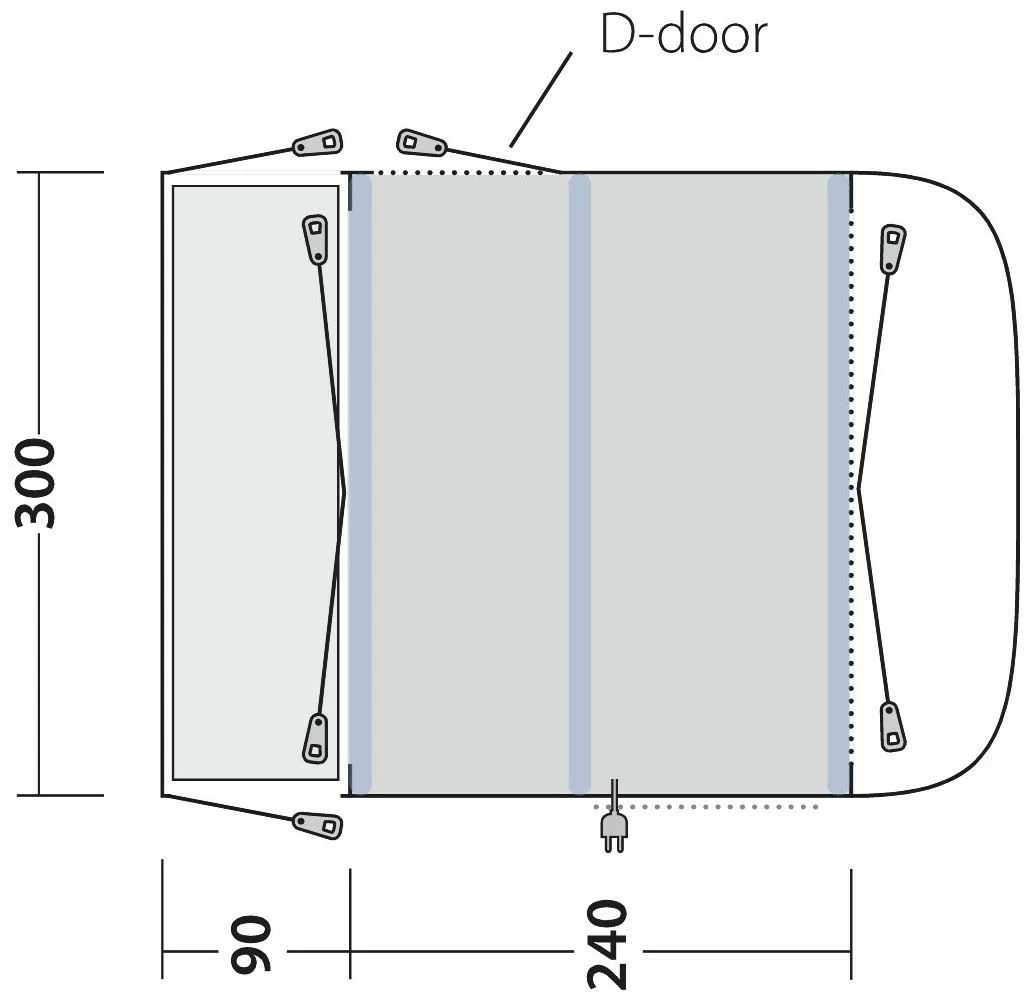 Das aufblasbare Outwell Newburg 240 Hochbrustzelt lässt sich einfach und schnell an beiden Seiten Ihres Wohnmobils befestigen. Es ist ideal für Freunde, Paare auf der Suche nach mehr Platz und Familien mit wachsenden Kindern, die ihren eigenen Platz wollen. Das Tunnelzelt hat eine Seitentür mit einem Insektenschutzgitter. Es gibt auch eine Tür auf beiden Seiten der Link-Zugangszone, die mit Ihrem Wohnmobil verbunden ist. Durch die Anpassung an Ihre Bedürfnisse und Wetterbedingungen können Sie die Belüftung variieren. Die faltbare Haustür mit Insektenschutznetz unter einer gekrümmten Markise ermöglicht es Ihnen, das Zelt zu öffnen, um mit der Natur in Kontakt zu sein. Ein optionales Innenzelt für zwei Personen bietet zusätzlichen Platz für ein Schlafzimmer oder Stauraum im Wohnmobil. Du musst es nicht packen, wenn du auf einem Outdoor-Abenteuer unterwegs bist, da du es auf deinem Stellplatz als Zuhause stehen lassen kannst, das auf dich wartet, wenn du zurückkehrst.
