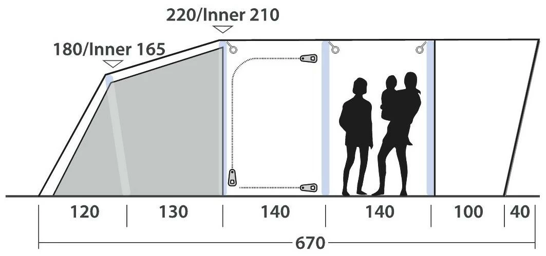 Met voldoende stahoogte geniet u van het ruime gevoel van een volledig uitgeruste tent die u het comfort van thuis biedt. Er is ruimte voor vijf personen, ideaal voor gezinnen of vrienden die een tent delen, en door het uitstekende ontwerp maakt u contact met de natuur en kunt u samen ontspannen in stijl. Door de voordeur weg te rollen creëert u een panorama-ervaring waarmee u buiten naar binnen brengt.