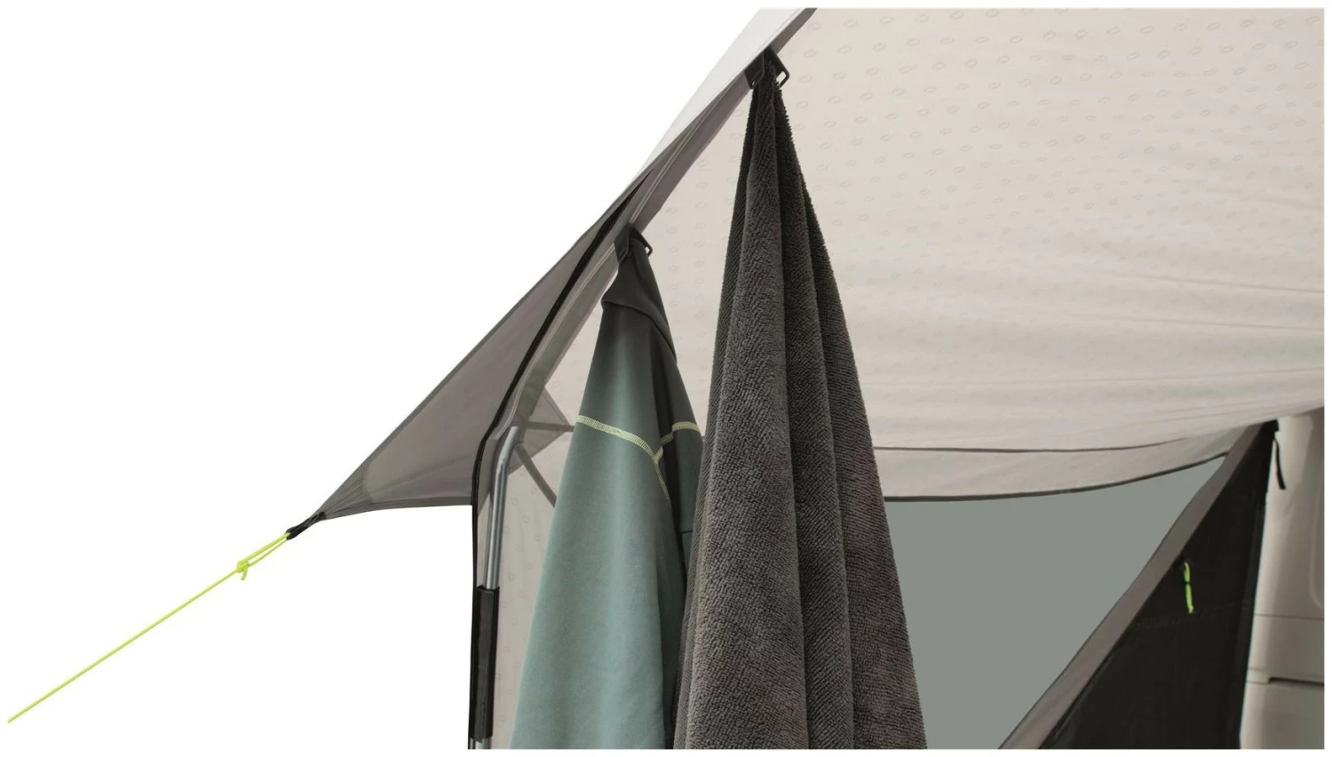 Sie werden den flexiblen Schutz vor den Elementen lieben, den das Outwell Touring Shelter für das Leben im Freien bietet. Leicht, mit einer kompakten Größe verpackt, für Wohnmobile, Vans und Wohnwagen konzipiert, bietet es praktischen Wohnraum auf Tour oder als Basis für Outdoor-Abenteuer. Der nach vorne abgewinkelte, stabilisierende Bügelrahmen mit Stahlpolen und vormontierten Lichtleitern maximiert die Kopffreiheit. Sie sind nicht eingeschlossen, wenn die Sonne scheint, da die Seitenwände Fenster haben und Sie die Wände wegrollen können, um sie als Sonnensegel zu verwenden. Sie werden auch den Komfort des Outwell Hook Track Systems schätzen, damit Sie Beleuchtung, Kleidung und andere leichte Gegenstände sicher und griffbereit über dem Boden aufhängen können.