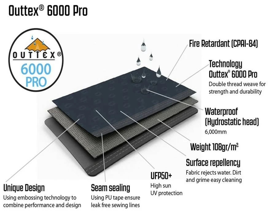| Außenzelt | Outtex® 6000 pro, 100% Polyester; 6000 mm |