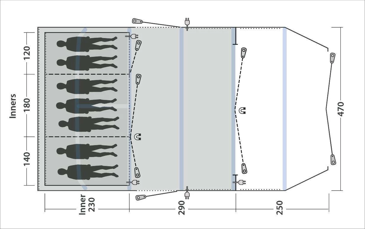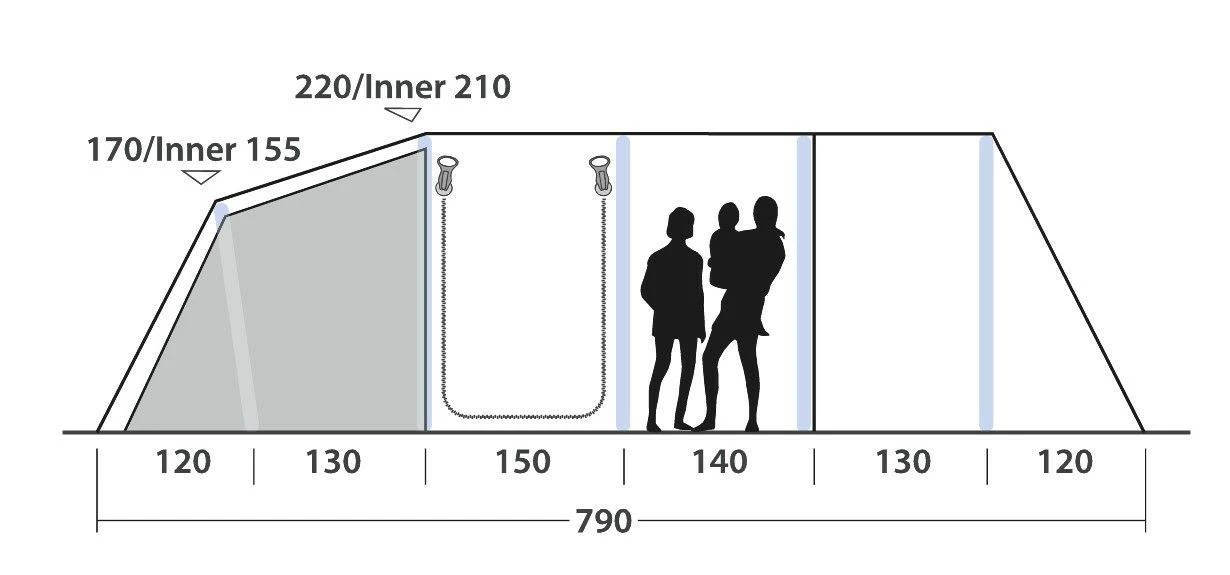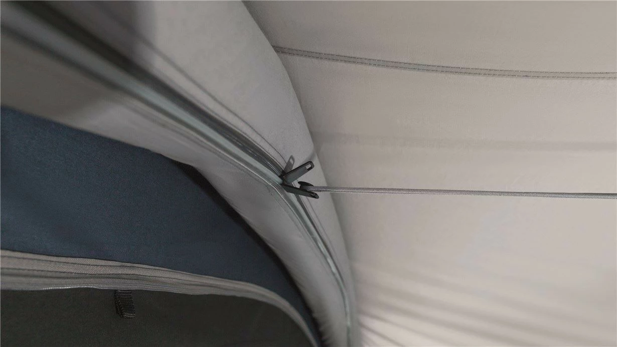 Das Wood Lake 7ATC mit Quick & Quiet Access bietet Platz für bis zu sieben Personen in drei 230 cm großen, abgedunkelten Master-Schlafkabinen vom Typ Ambassador, die mit Outwell Quick & Quiet Inner Doors ausgestattet sind. Vorgebogene Luftschläuche gewährleisten die Stabilität und schaffen reichlich Kopffreiheit. Die steilen Seitenwände optimieren zudem den nutzbaren Raum im Inneren, der mit einem langlebigen Zeltboden aus Polyethylen versehen ist. Das Outwell Easy Access Front Door System lässt sich vollständig öffnen. Zudem verfügt das Zelt im vorderen Bereich über einen herausnehmbaren, wannenförmigen Zeltboden sowie über eine Tür mit Moskitonetz am Eingang zum zentralen Bereich.