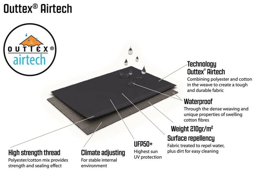 | Außenzelt | Outtex® Airtech, 65% Polyester / 35% Baumwolle; |